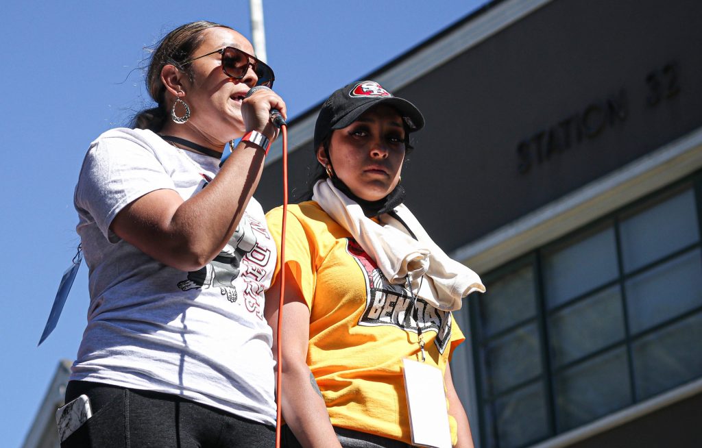 In September, Ashley and Michelle Monterrosa led dozens of supporters to the billboard of Sean Monterrosa near police headquarters. Standing over a train track, the crowd held a moment of silence.