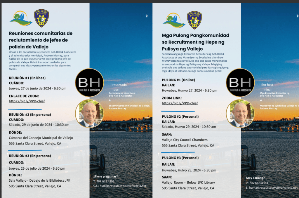 VALLEJO – The city has scheduled at least three community meetings asking for residents to discuss what they would like to see in Vallejo’s next police chief.