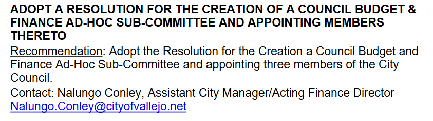 The city did reveal on Tuesday, October 21, a week before the scheduled Vallejo City Council on October 28, that Assistant City Manager Nalungo Conley is the acting finance director.